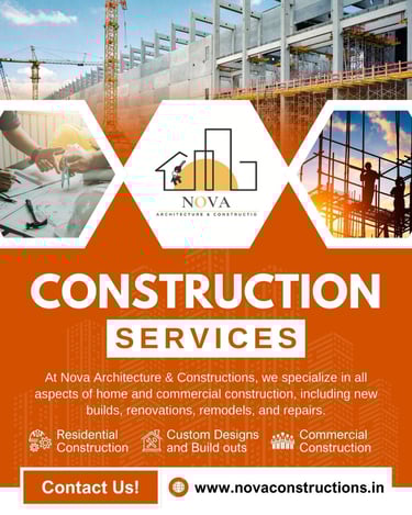 Nova Architecture & Constructions is a trusted name for construction services in Yelahanka, offering end-to-end solutions for residential and commercial projects. Our goal is to deliver high-quality, durable, and modern construction results that match your vision and meet the growing architectural needs of Yelahanka’s fast-developing neighborhoods