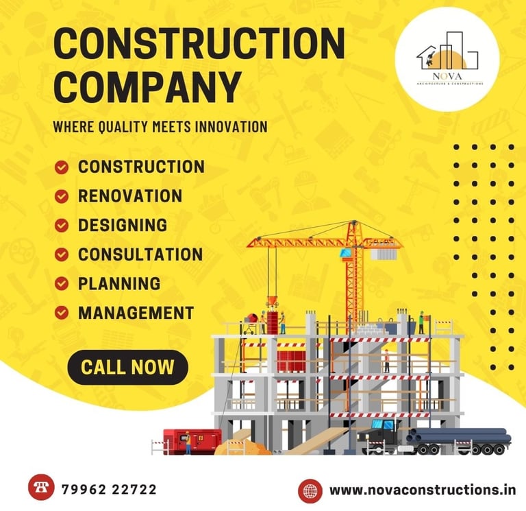 Welcome to Nova Architecture & Constructions, a trusted name in the field of modern construction and architectural design in Yelahanka, Bangalore. We offer complete construction solutions, from planning and design to worker management, materials control, and post-construction maintenance. Our goal is to deliver high-quality projects that combine strength, style, and sustainability.