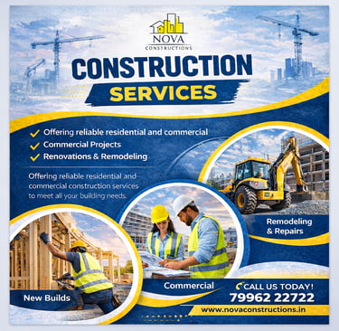 Our experienced team specializes in end-to-end construction services in Yelahanka, managing every stage of the project—from planning and material selection to execution and final handover. Whether you are planning a new house, a commercial building, or a renovation project, Nova Constructions ensures professional workmanship and transparent communication throughout the process.