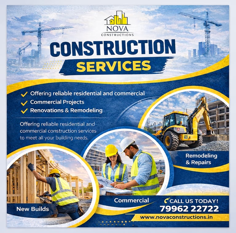 As a locally trusted construction company in Yelahanka, Nova Constructions is committed to delivering dependable solutions that meet evolving construction standards. Our goal is to create strong, functional, and visually appealing spaces that stand the test of time.
