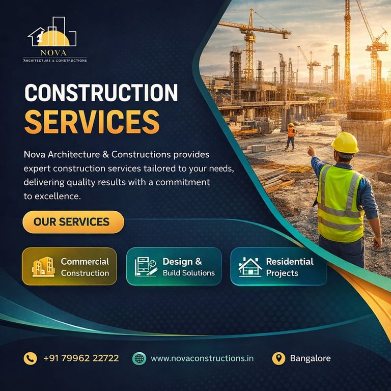 Nova Architecture & Constructions is a trusted name for construction services in Yelahanka, Bangalore, delivering high-quality residential and commercial projects with a strong commitment to engineering excellence and timely execution. With in-depth local expertise and a customer-centric approach, we provide end-to-end construction solutions tailored to the evolving needs of property owners, developers, and businesses in and around Yelahanka.