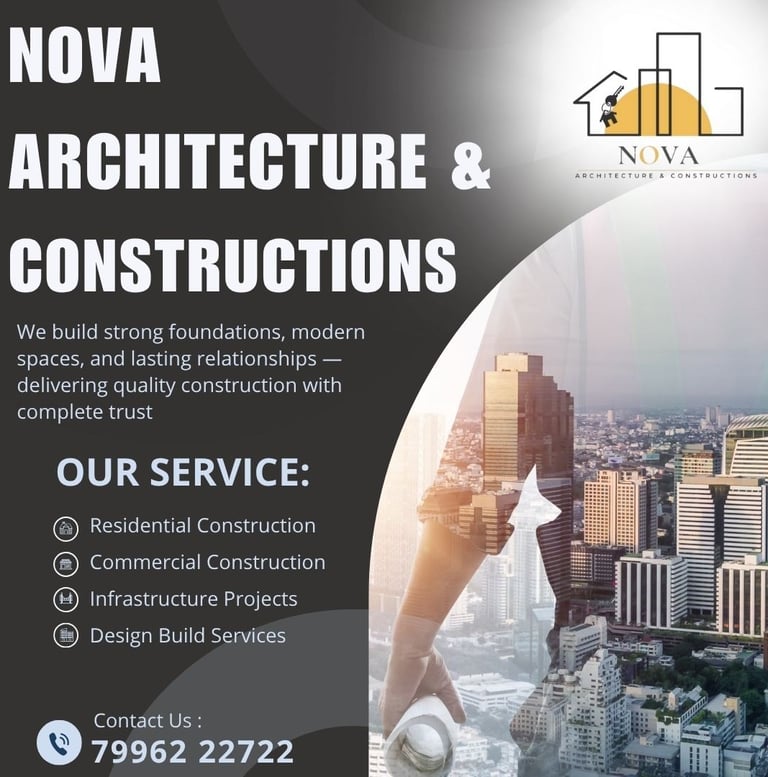 At Nova Architecture & Constructions, we don’t just build structures — we create experiences that last. With a commitment to excellence, innovation, and trust, we deliver top-notch construction solutions across residential, commercial, and infrastructure sectors. Whether it’s a home, office, or a large-scale development, our team is dedicated to transforming visions into reality with high-quality craftsmanship and dependable service.