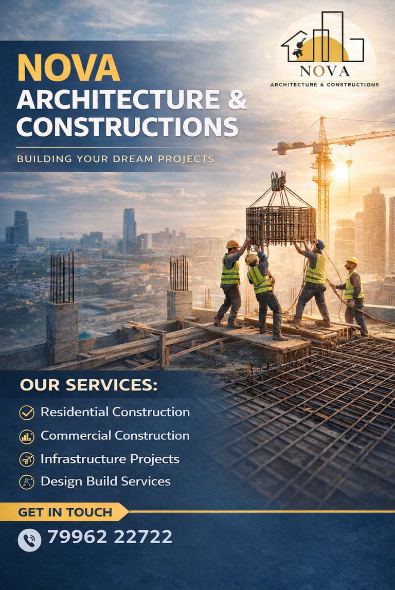 Nova Architecture & Constructions is a trusted name for architecture, construction, and design-build services in Chikkabanavara, Bangalore. With a strong commitment to quality, transparency, and timely execution, we deliver residential and commercial projects that meet modern standards and client expectations. Our team combines technical expertise with creative design to build spaces that are functional, durable, and aesthetically refined.
