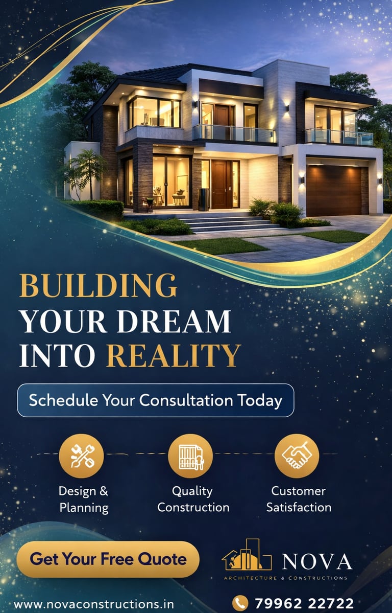 Nova Architecture & Constructions is a leading architecture and construction company in Hebbal, Bengaluru, known for delivering thoughtfully designed, structurally sound, and aesthetically refined residential and commercial projects. With a strong focus on quality workmanship, transparent processes, and timely delivery, we help clients transform ideas into well-planned spaces that reflect modern lifestyles and long-term value.